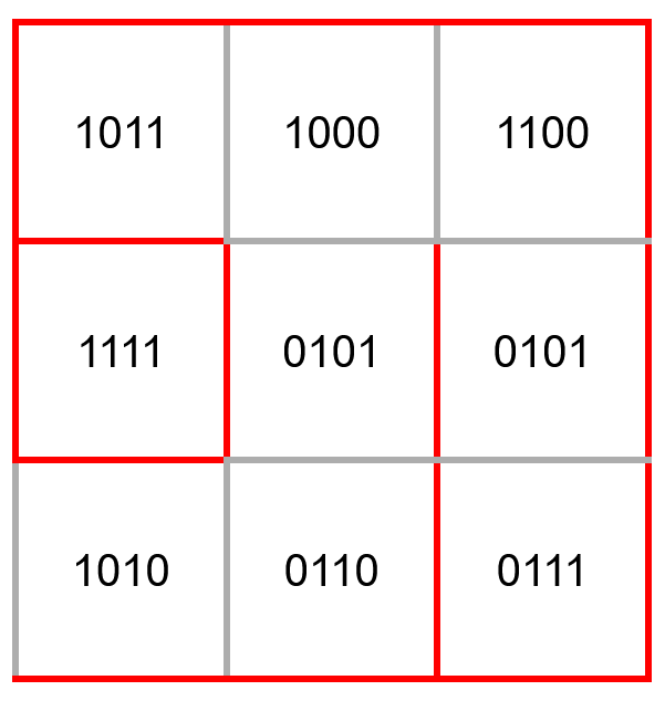 - Each cell registers the same wall twice. For example, if cell 0110 is above cell 1001, the shared wall will be registered in both cells.