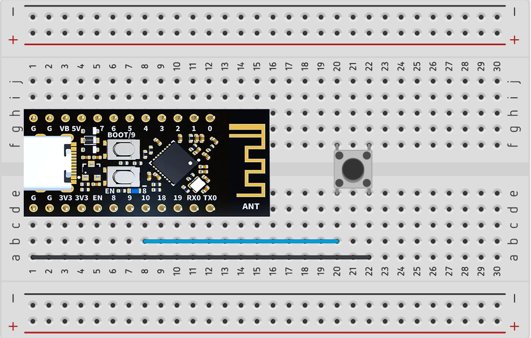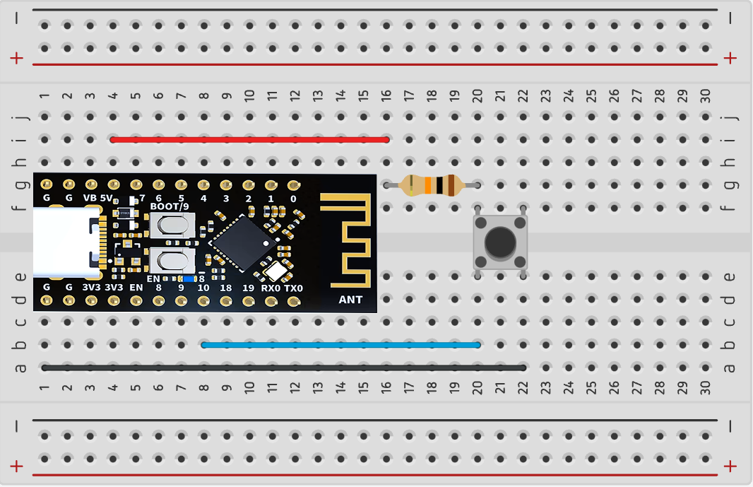 The layout above is for a pushbutton that uses the ESP32’s internal pullup resistor.
