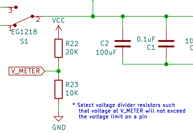 You may have noticed a voltage divider in the power supply schematic. This is designed to measure the voltage of your battery.